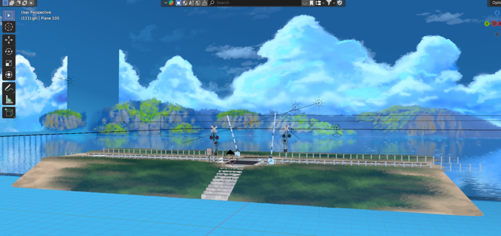 Experience the captivating beauty of a meticulously crafted Japanese anime scene, now brought to life in stunning 3D! This enchanting riverside landscape, designed for the Eevee engine in Blender, offers a seamless blend of tradition and modernity. Immerse yourself in the serene ambiance of a tranquil river, bordered by lush, moving grasses that sway gently in the breeze. Watch as a picturesque railway crossing completes the scene, evoking a sense of nostalgia and adventure.